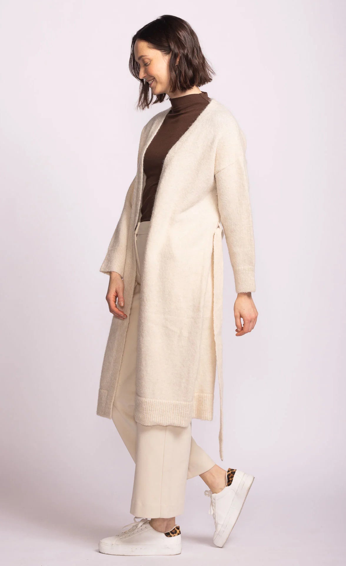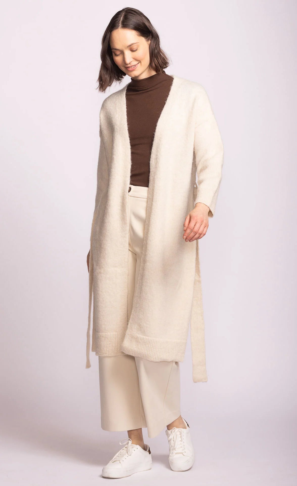 The Kiki Sweater is a long knit cardigan crafted from super-soft yarn and finished with a self-tie belt for a flattering touch. Layer it over a top and pants or drape it over a dress for an effortlessly cozy-chic outfit.