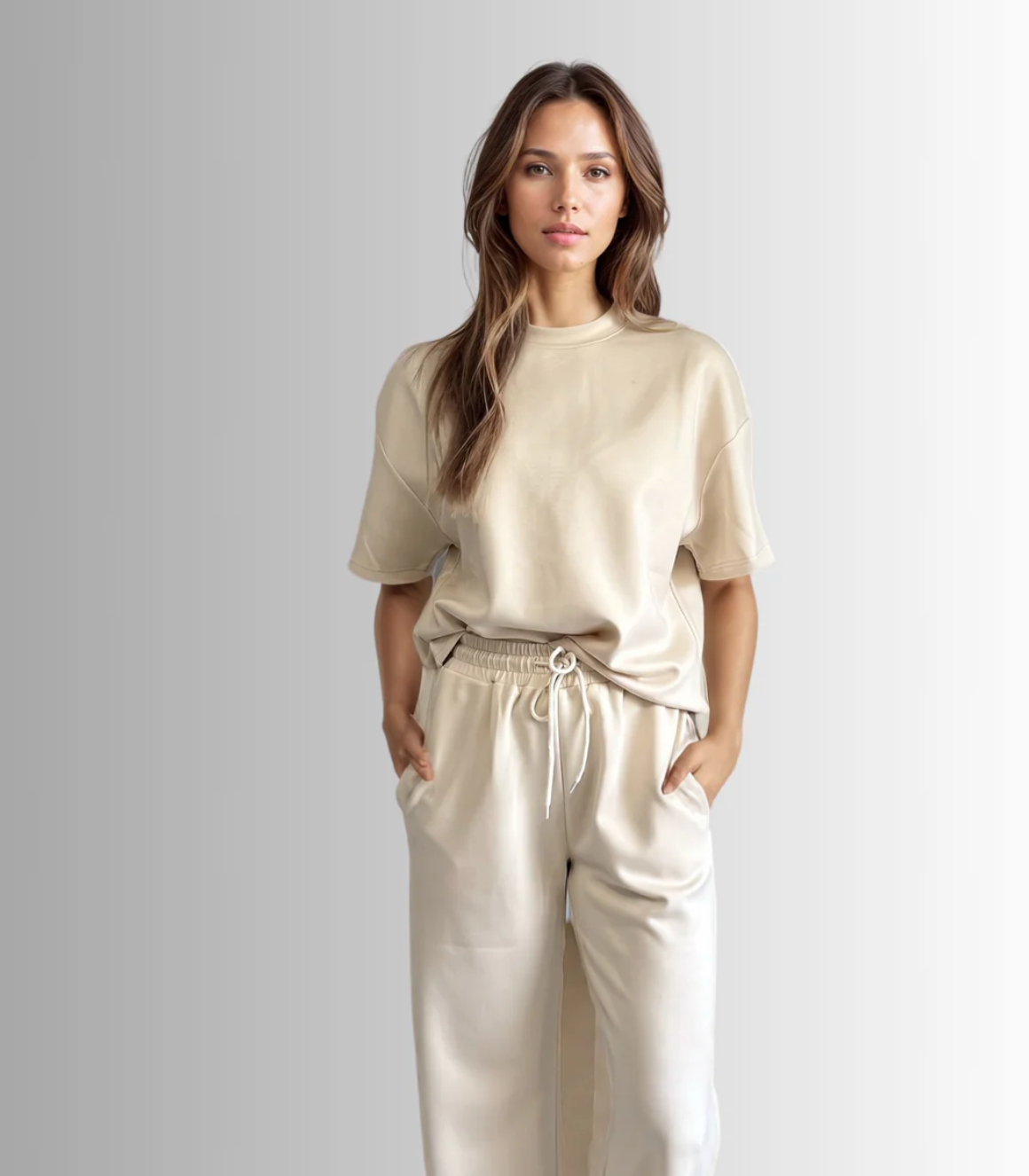 Our latest loungewear line showcases an innovative fabric with a nearly scuba-like texture. This lightweight polyester/spandex blend is incredibly cozy. Known for its peach fuzz softness and wrinkle-resistant nature, it's perfect for a comfortable and snug experience.