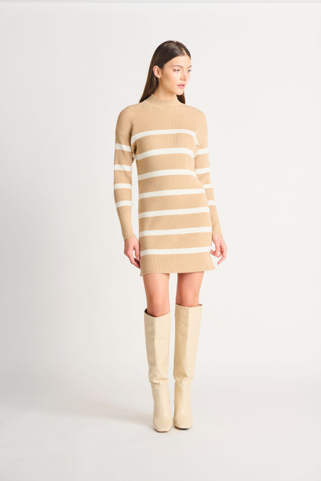 MOCKNECK STRIPED SWEATER DRESS