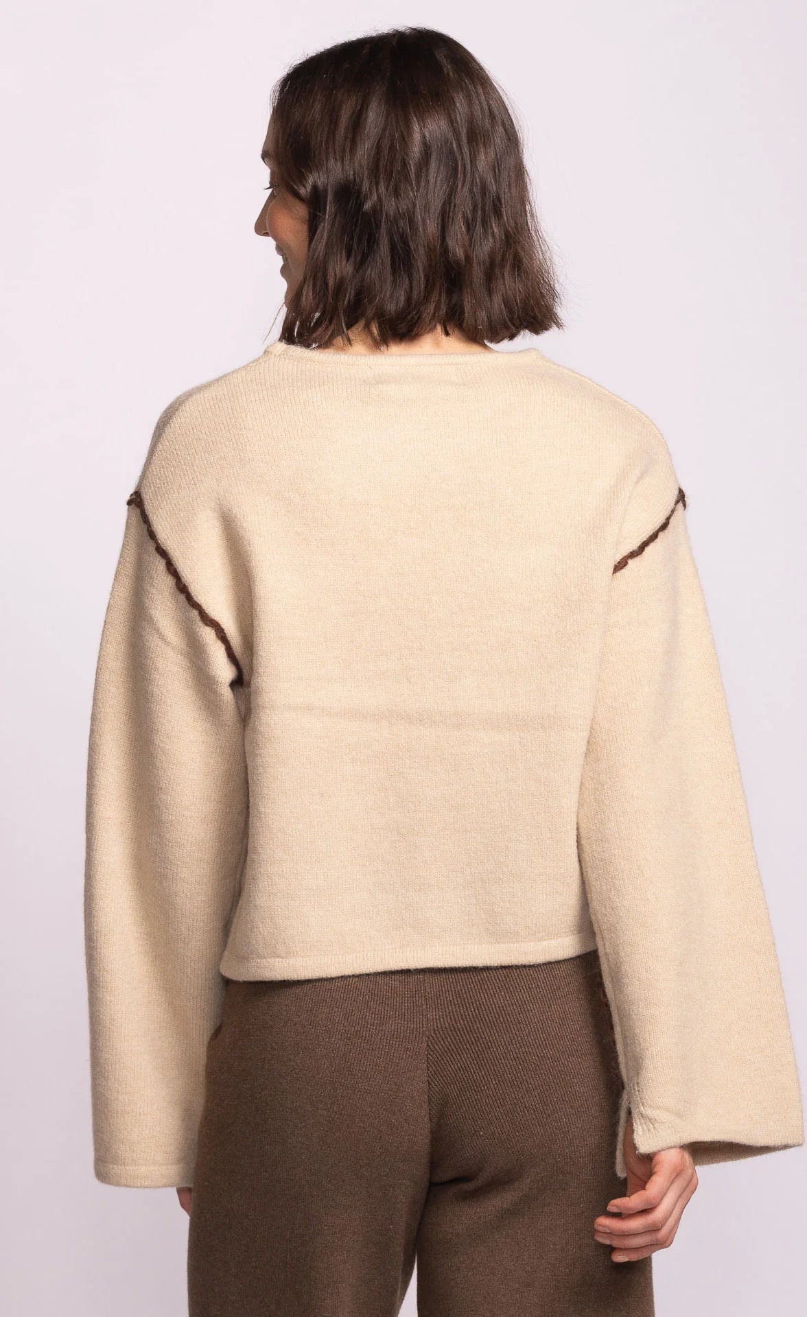 The Grenola Sweater is a cozy knit sweater featuring a boxy fit and contrast stitch details. Pair this sweater with jeans or a skirt, and boots for an effortlessly chic outfit.